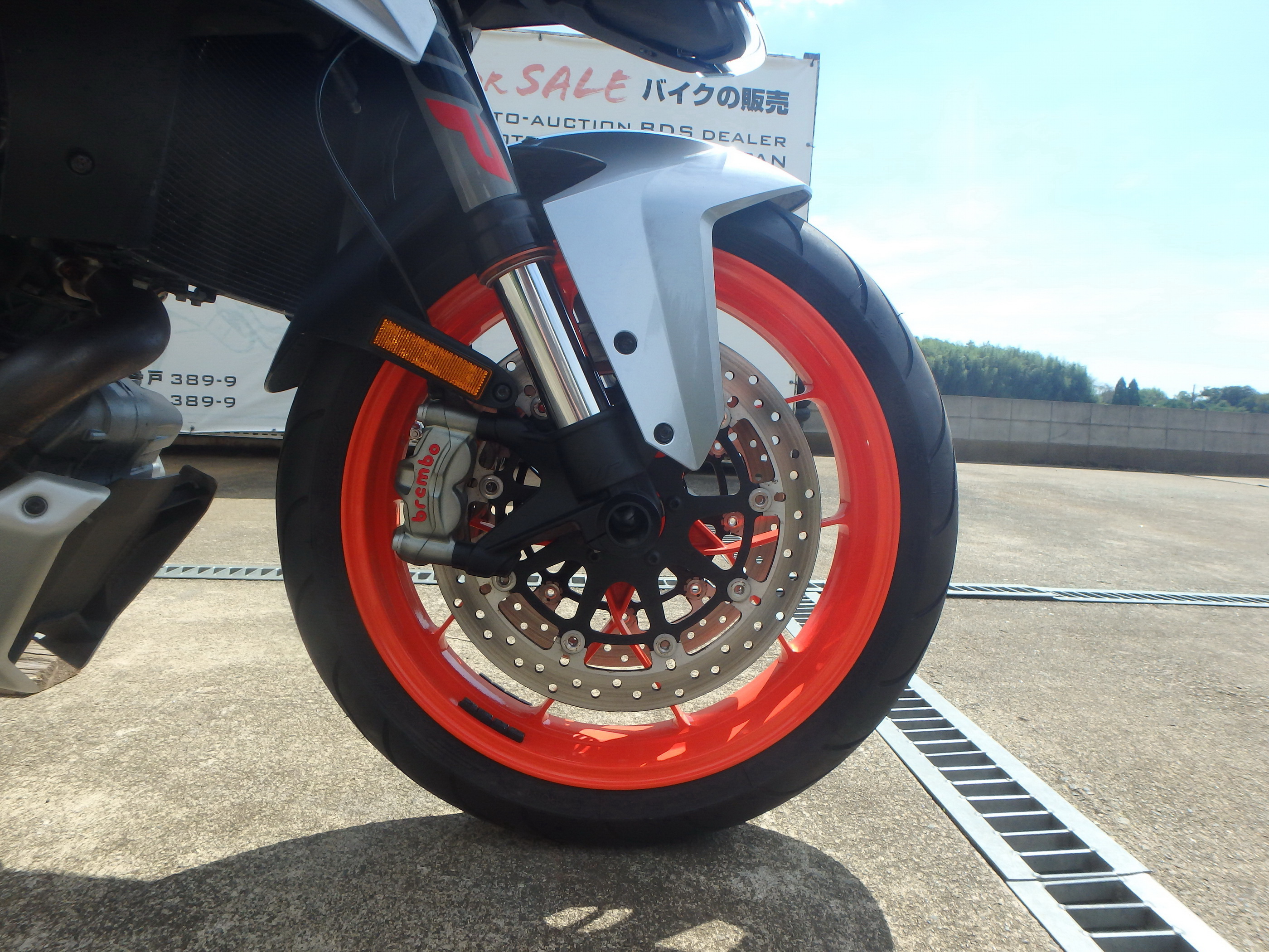 2x 320 mm discs, Brembo four-piston radial fixed calliper